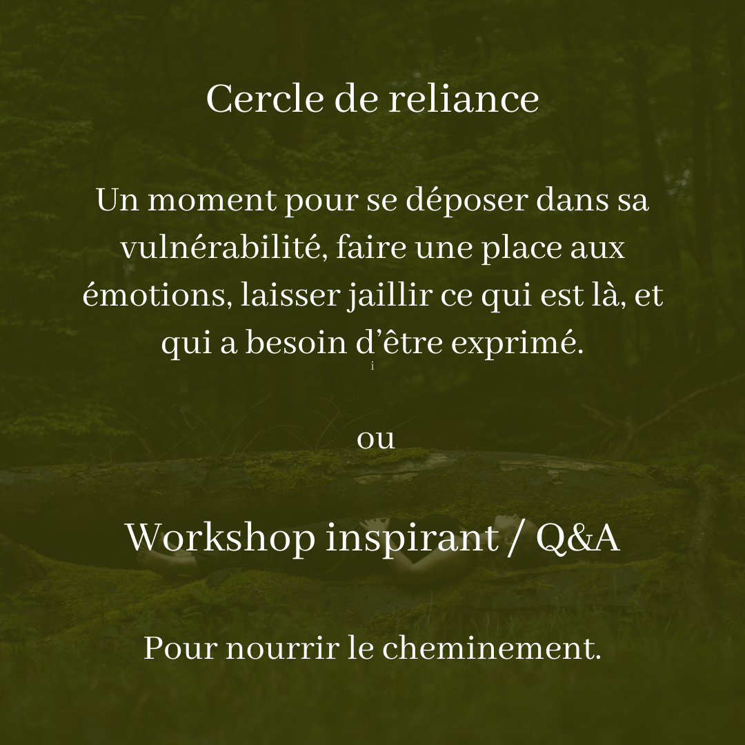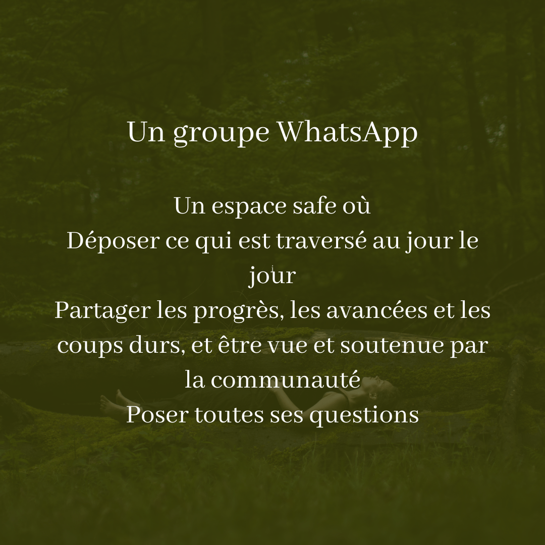 Dans cet espace, tu vas trouver un vrai accompagnement, un village, avec des espaces de coaching de groupe, des cercles de femmes et une pratique corporelle tout à fait adaptée.